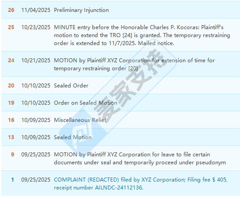本案是Sullivan律所代理NHS, Inc.在美国发起的商标维权案件,该案件前期以匿名形式发起维权,并于11月4日获批初步禁令,案件细节披露!本案主要针对NHS, Inc.在美国注册的Santa Cruz系列文字商标以及图形商标发起的维权,共有431店涉案!为伊利诺伊州数月以来,被告人数之最!需要名单的卖家可在评论区留言“名单”获取!已经收到TRO传票的卖家,也需尽快联系律师获取解决方案,避免案件缺席后造成进一步损失!