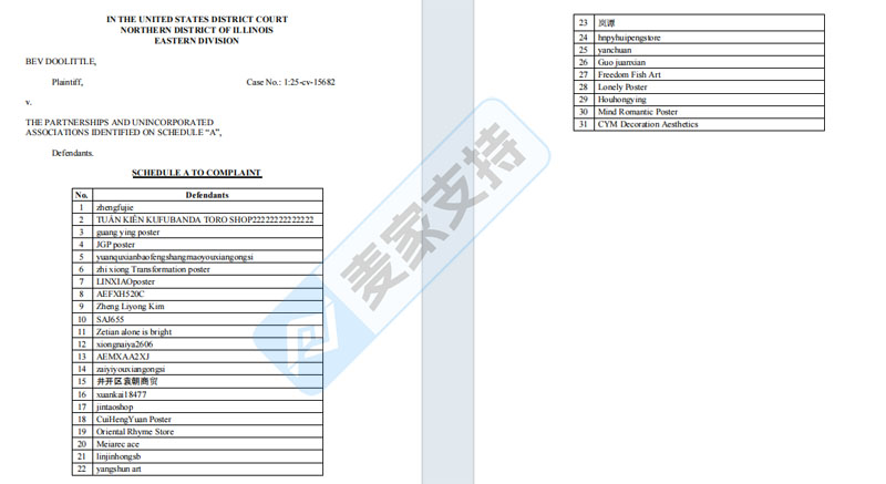 25-cv-15682,西部迷彩艺术家Bev Doolittle跨境维权,31店涉案将被TRO冻结!
