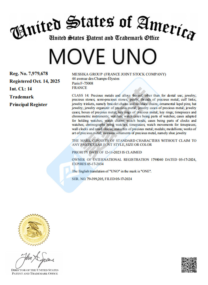 本案是Flener 律所代理Messika Group在印第安纳州发起的商标维权案件,涉案商标为Messika经典图形商标以及Move uno文字商标,商标号分别为:6835769和7979678,涵盖第14大类的珠宝以及配饰等类目,未经授权使用则会面临TRO冻结风险,目前该案件处于前期立案阶段,暂未获批TRO临时限制令,跨境卖家需尽快排查并下架高危链接,并做好应对措施。