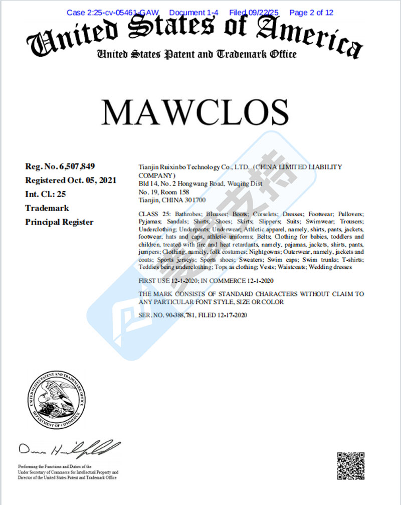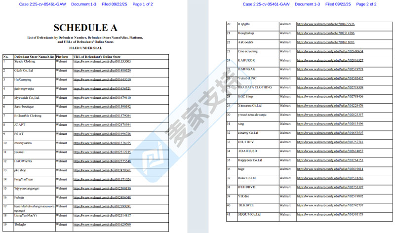 25-cv-05461,服饰品牌mawclos维权,41个沃尔玛涉案店铺被TRO全军覆没!