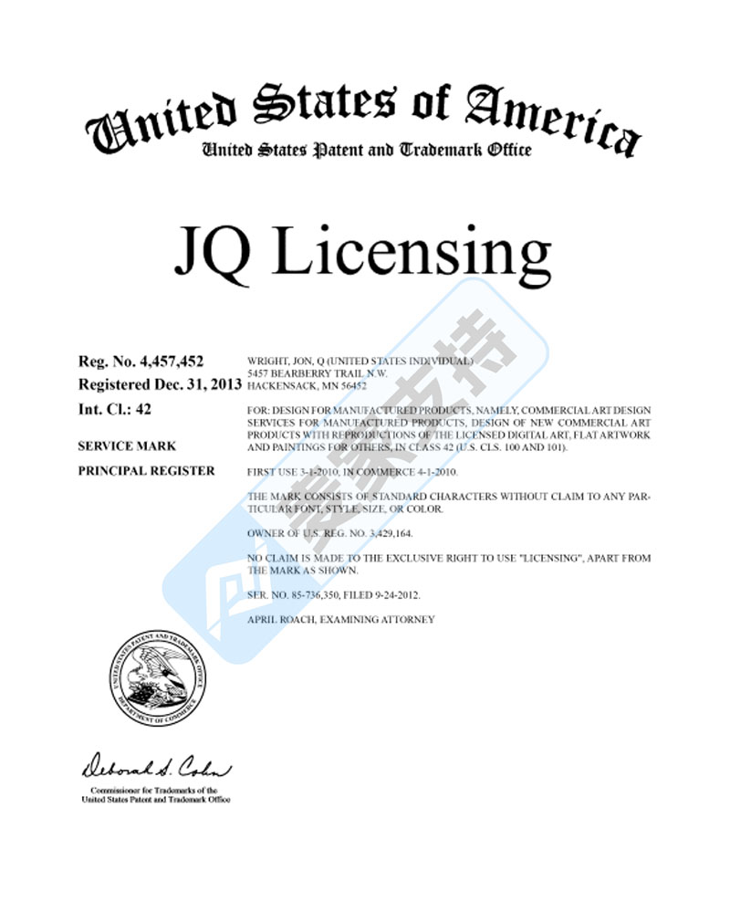 品牌方:Jon Q. Wright and JQ Licensing, LLC