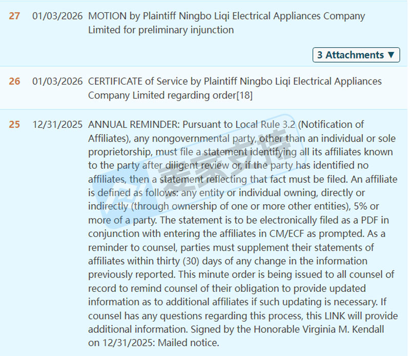 25-cv-14642,插电式壁挂取暖器专利隐匿维权,涉案账户资金已被TRO冻结