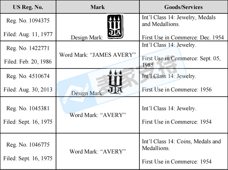 本案是DYKEMA GOSSETT PLLC律所代理James Avery Craftsman, Inc. 发起的商标维权案件,涉案商标作品为JAMES AVERY、AVERY、涉及到珠宝行业及硬币、奖牌等,该商标首次作为商业使用是在1954年。未经授权使用则会面临TRO冻结风险,目前该案件处于前期立案阶段,暂未获批TRO临时限制令,跨境卖家需尽快排查,并下架高危链接!