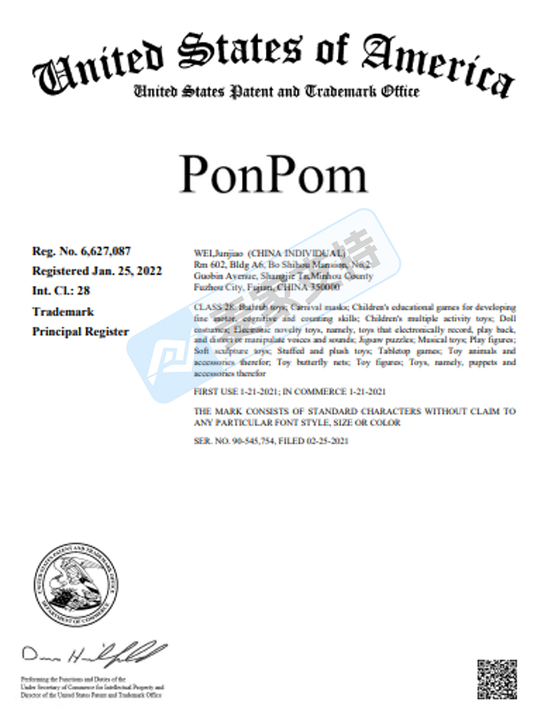本案是Clovian Law LLC代理国人卖家Junjiao Wei于2026年发起的全新一轮商标维权,针对其出海玩具品牌ponpom未经授权使用的侵权行为,原告早在24年和25年就曾委托Concord律所断断续续发起过数次维权,并成功TRO冻结超300店!麦家支持建议玩具类目卖家需尽快展开全面排查,避免将ponpom商标词误用于第28大类中,该商标涵盖浴缸玩具、面具、儿童益智游戏、娃娃服装、拼图、玩偶、桌面游戏等等多个玩具细分领域,均需注意鉴别。