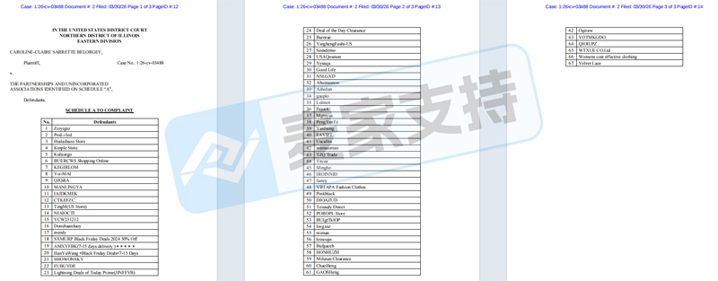 本案是keith律所代理Caroline-Claire Sarrette Belorgey自25年7月在宾夕法尼亚州维权后发起的一轮全新维权,不同的是本次案件在伊利诺伊州发起,共67店涉案,目前案件处于前期立案阶段,暂未获批TRO临时限制令。麦家支持建议服饰卖家注意排查,避免未经授权上架了原告涉案版权花纹,导致TRO冻结风险!