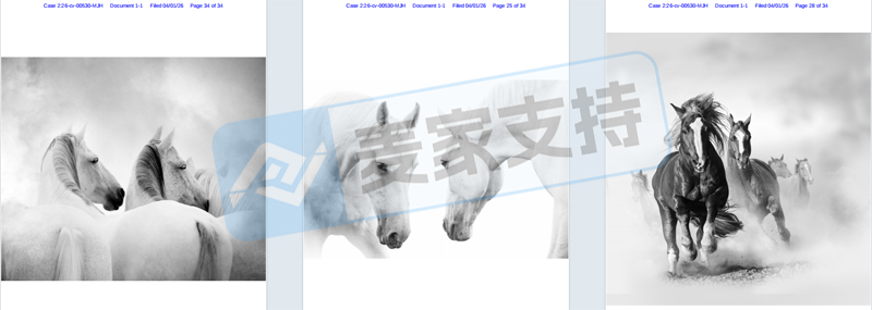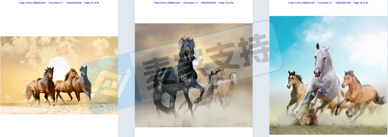 本案是keith联合Ference律所代理俄罗斯艺术家Maria Itina在宾夕法尼亚州发起的版权维权案件,主要针对Maria Itina于2025年2月19日在美国获得版权认证的11个马儿作品被侵权的行为发起,涉案版权号分别为:VA 2-462-700、VA 2-462-702、VA 2-462-698、VA 2-462-697、VA 2-462-701、VA 2-462-705、VA 2-462-699、VA 2-462-703、VA 2-462-695、VA 2-462-704及VA 2-462-694等。