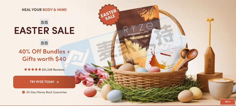 Ryze, Inc.是一家美国创新健康饮品公司,专注于研发、制造和销售高质量膳食补充剂饮料混合物。Ryze核心产品包括蘑菇咖啡和抹茶系列,通过将冬虫夏草、灵芝、猴头菇等六种珍贵药用菌融入饮品,为消费者提供提升注意力与能量的健康选择。