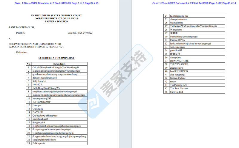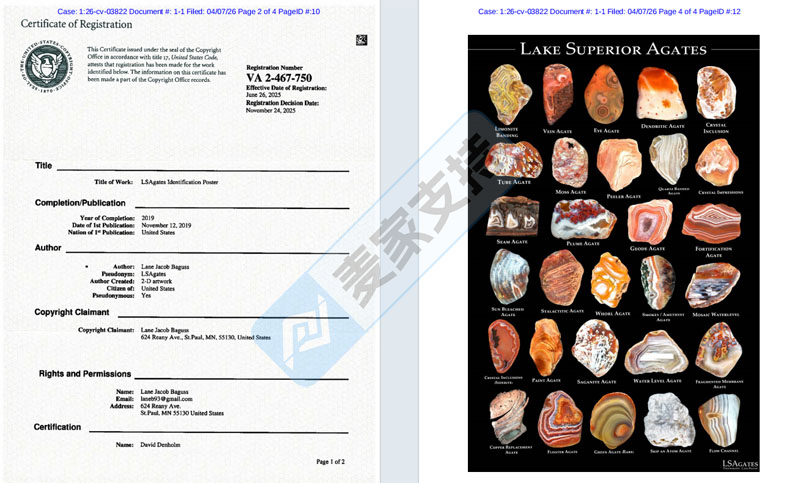26-cv-03822,跨境卖家注意避雷LSAgates玛瑙识别海报,已有46店涉案,正面临TRO冻结风险