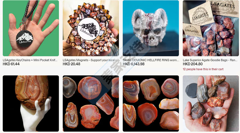 除工具外,LSAgates还通过Etsy以及社交媒体销售各类玛瑙周边,如精品玛瑙、散装玛瑙原石包、玛瑙识别海报以及贴纸等,Lane Jacob Baguss凭借在社交媒体上展示的采石与加工视频,使LSAgates已成为全球玛瑙收藏者和手工宝石爱好者心中极具代表性的社群品牌。