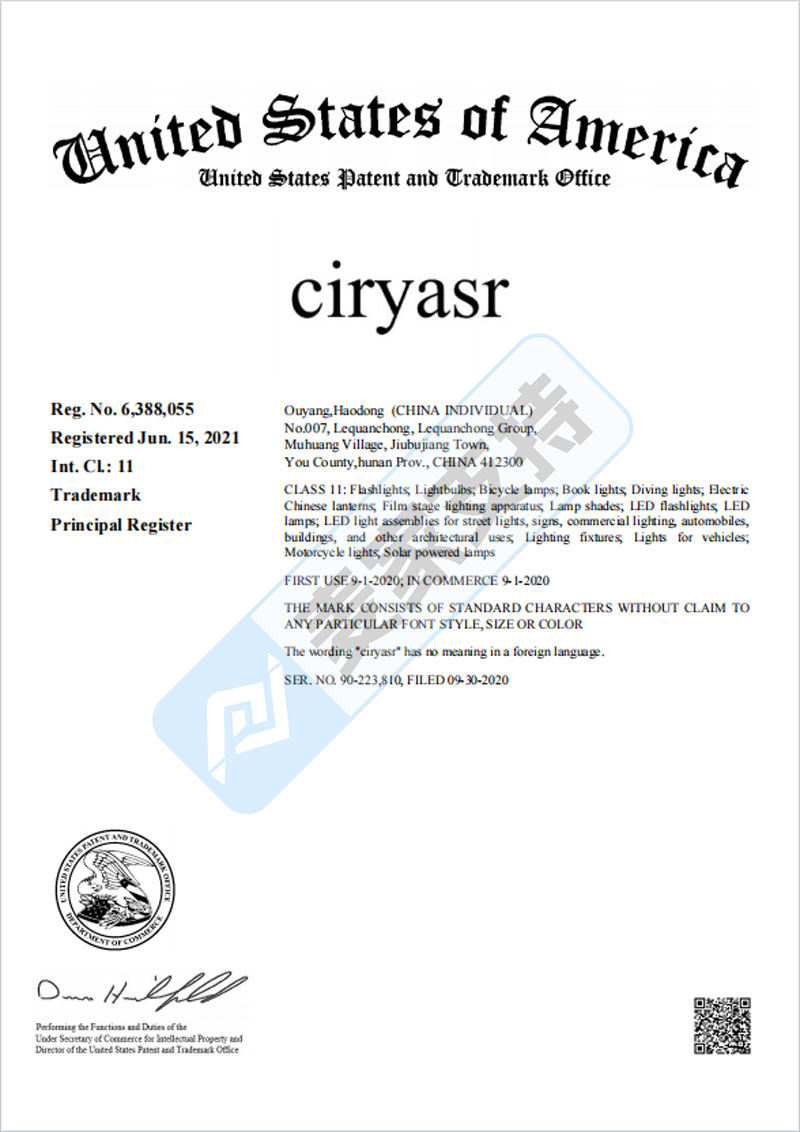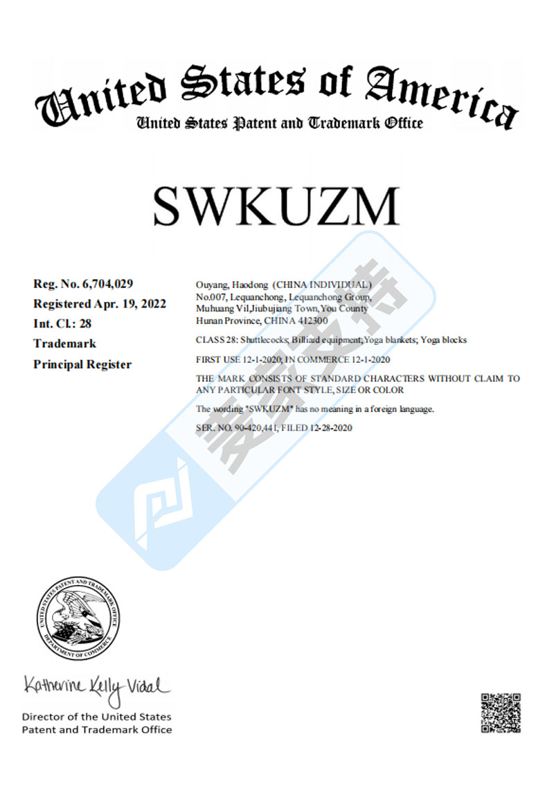 本案是Clovian律所代理国人卖家Ouyang Haodong 在伊利诺伊州发起的商标维权案件,目前该案件处于密封状态,涉案商标暂未公布,麦家支持通过检索发现,该原告在美国分别注册了Ciryasr和SWKUZM等2个商标分别在第11大类和第28大类,涵盖灯具类等照明设备,以及羽毛球、瑜伽毯等健身器材类目。