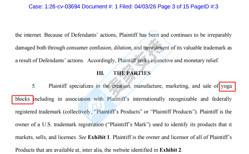 此外,原告起诉状中表明,原告自2021年就开始专注于使用其商标作为瑜伽砖的创意设计以及销售业务。综上,即使在案件处于密封的状态下,仍可以锁定本次维权商标为SWKUZM,目前原告已向法院递交了TRO临时限制令申请,暂未获得法院签署,跨境卖家需注意排查并规避侵权风险!