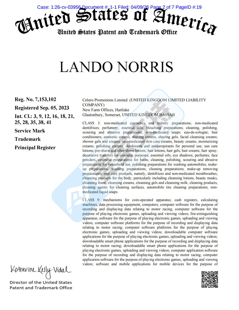 26-cv-03956,Lando Norris维权风暴持续升级,跨境卖家务必警惕!